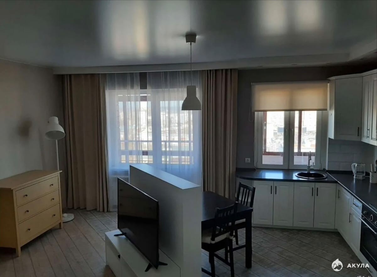 В продаже видовая, стильная однокомнатная квартира. С хорошим, качественным ремонтом.