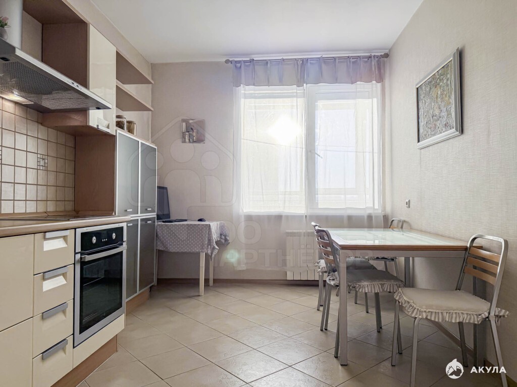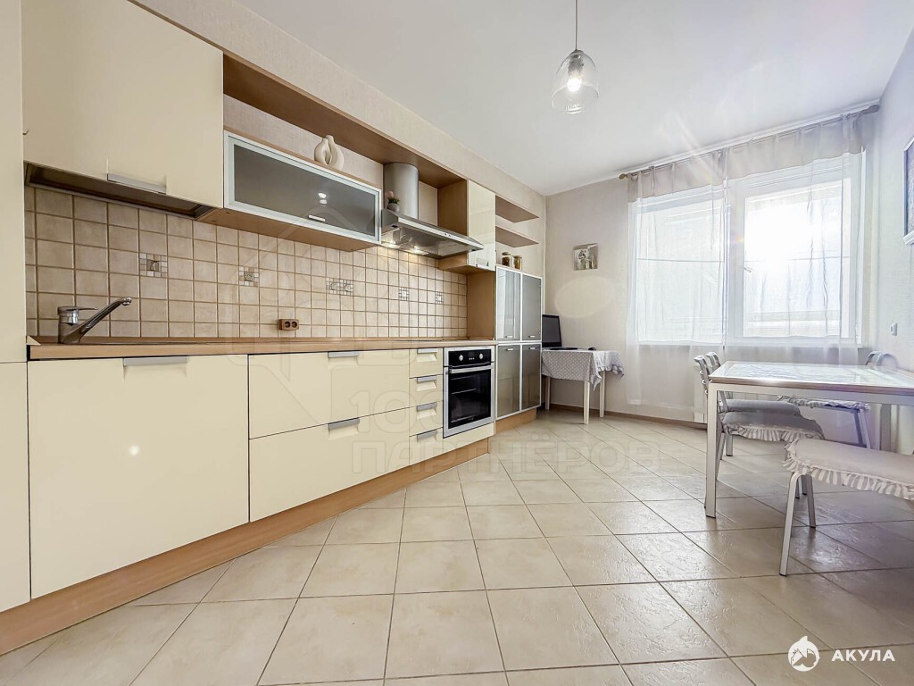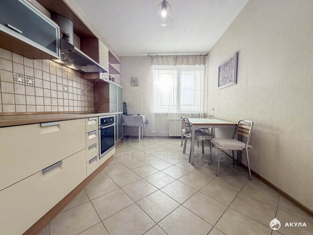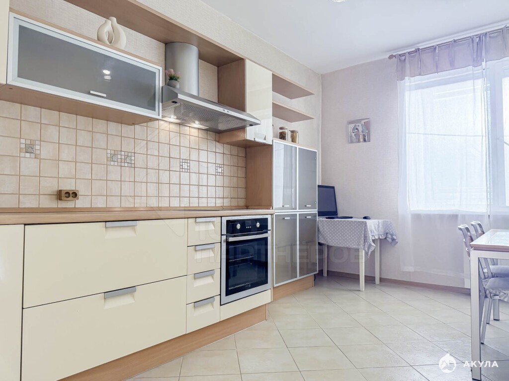 Отделка: ламинат на полу в комнате, кафель в зоне кухни и в коридоре, на стенах обои, санузел - аккуратная плитка. Все в хорошем состоянии.
