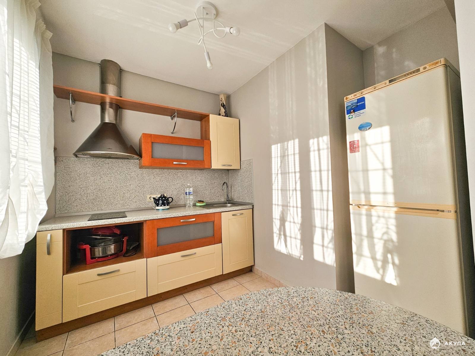 Юбилейный. Квартира в очень хорошем состоянии, пластиковые окна, в мае 2024 сделан косметический ремонт, установлен теплый пол в прихожей. В квартире остается немецкая кухня с техникой и холодильником, барная стойка, шкаф в спальне с итальянскими фасадами, кровать, вся мебель в гостиной. Заезжай и живи.