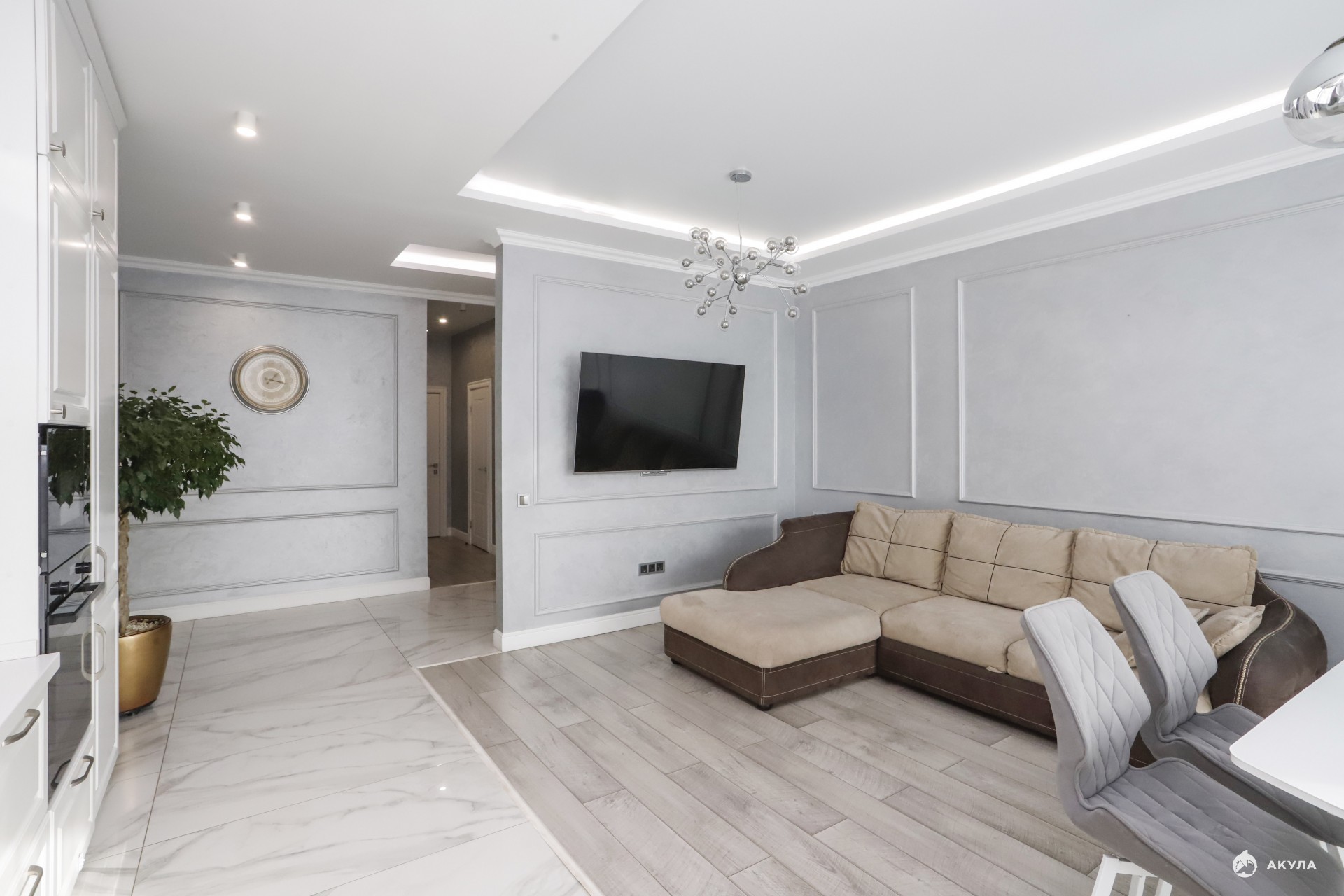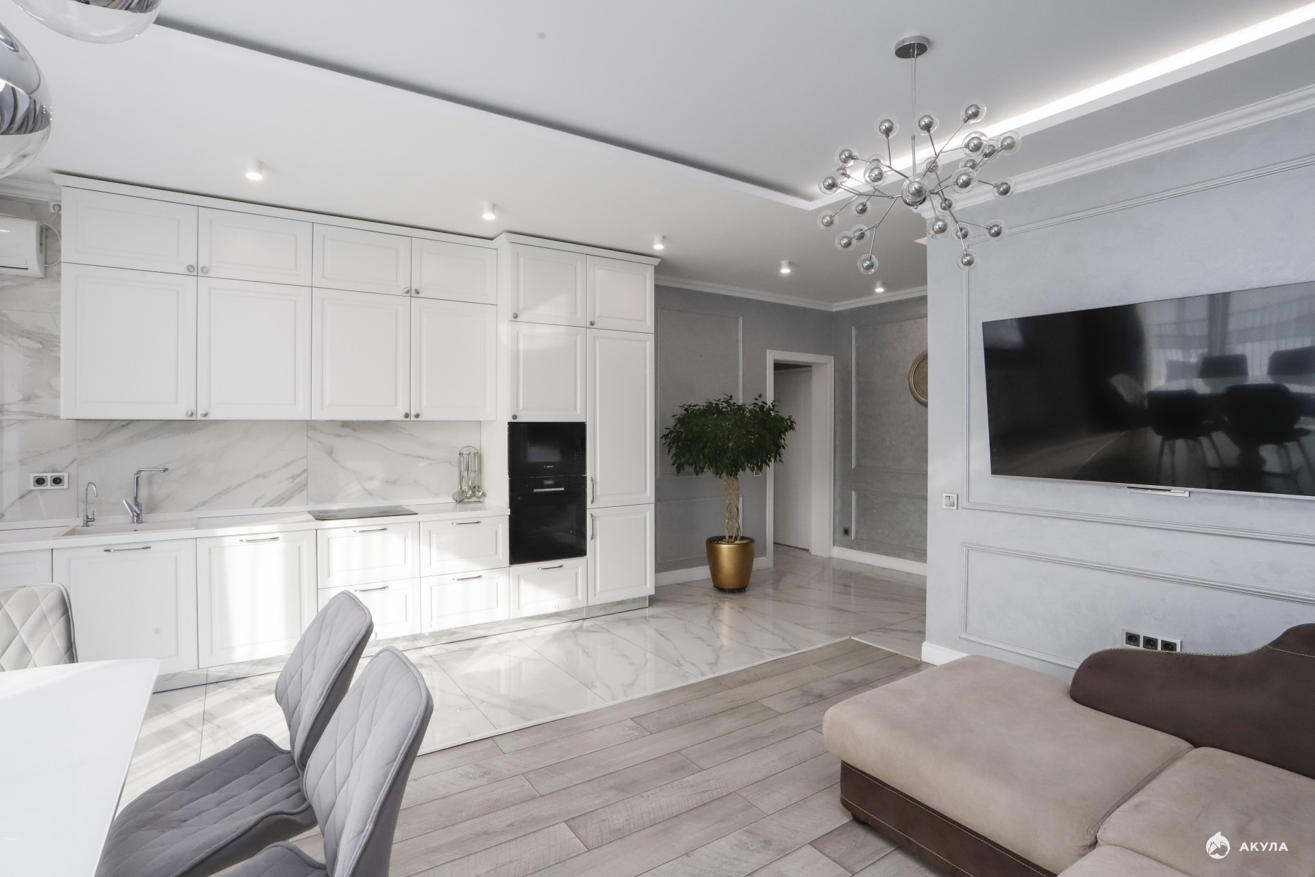 Теплый пол, высокие потолки. Хорошая дорогая техника и мебель.